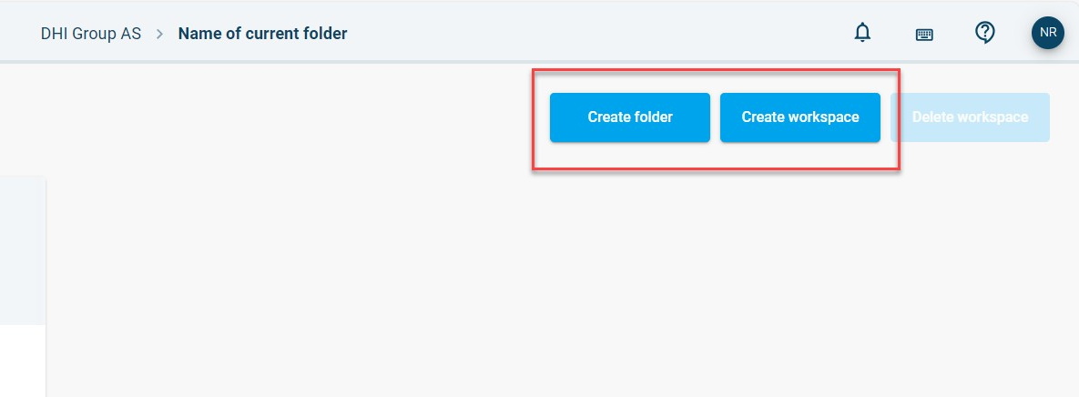 If you want to create a new workspace, click the button, “Create workspace”. It’s also possible to create a folder using the “Create folder” button.