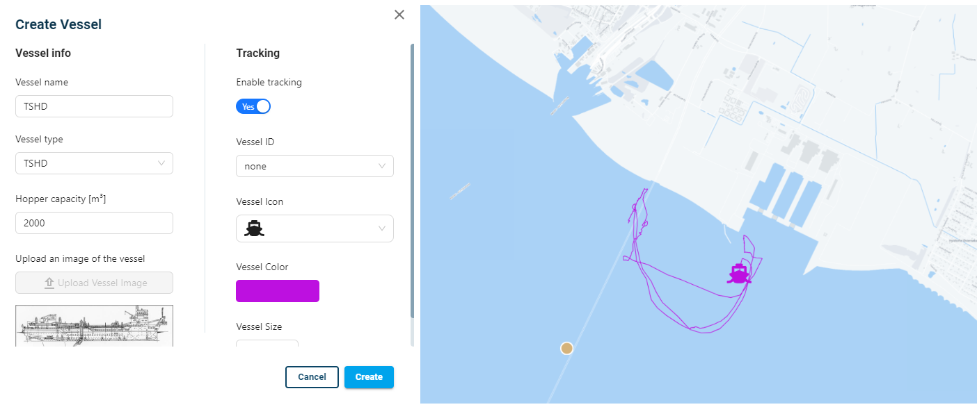 If using DHI PlumeCast in Operational mode, you can use the tracking feature for vessels, by activating it when defining the vessel.