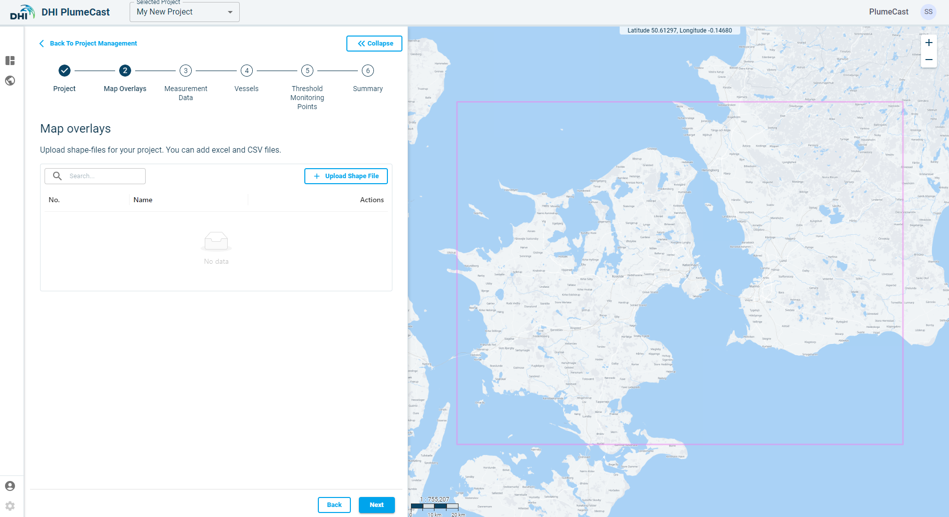 Click on ‘Upload Shape File’ button to add a map overlay to your project.