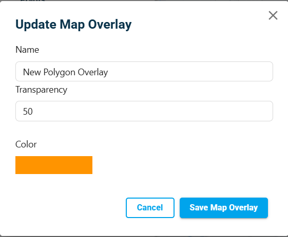 Map overlays can be edited, where you can change the colour and transparency of the shapefile.